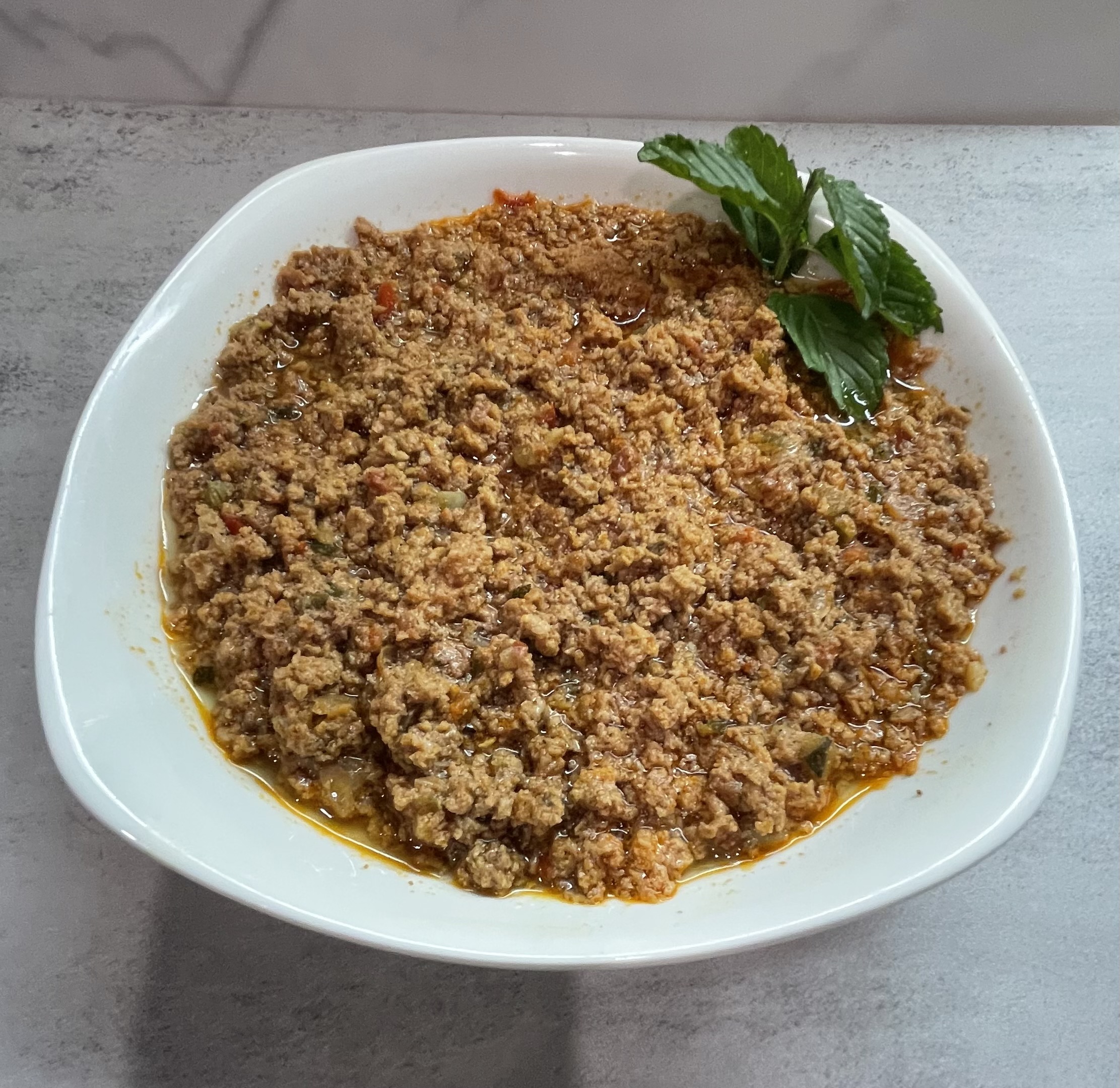 INGREDIENTS: -3 garlic cloves -1 onion -1 red bell pepper -2 small zuchini -1 jalapeño -Fresh oregano, dill, and mint (if you don’t have any fresh, just add a teaspoon of the dried version of each) -3 lbs ground turkey -2 lbs ground beef -4 chicken sausage ( I used the smoked mozzarella & artichoke kind, but you can use any kind) -1 x 28 ounce jar of Raos marinara sauce -2 cups chicken bone broth -1 & 1/2 tsp. each of salt, pepper, chili powder -1/2 tsp. Chili pepper flakes